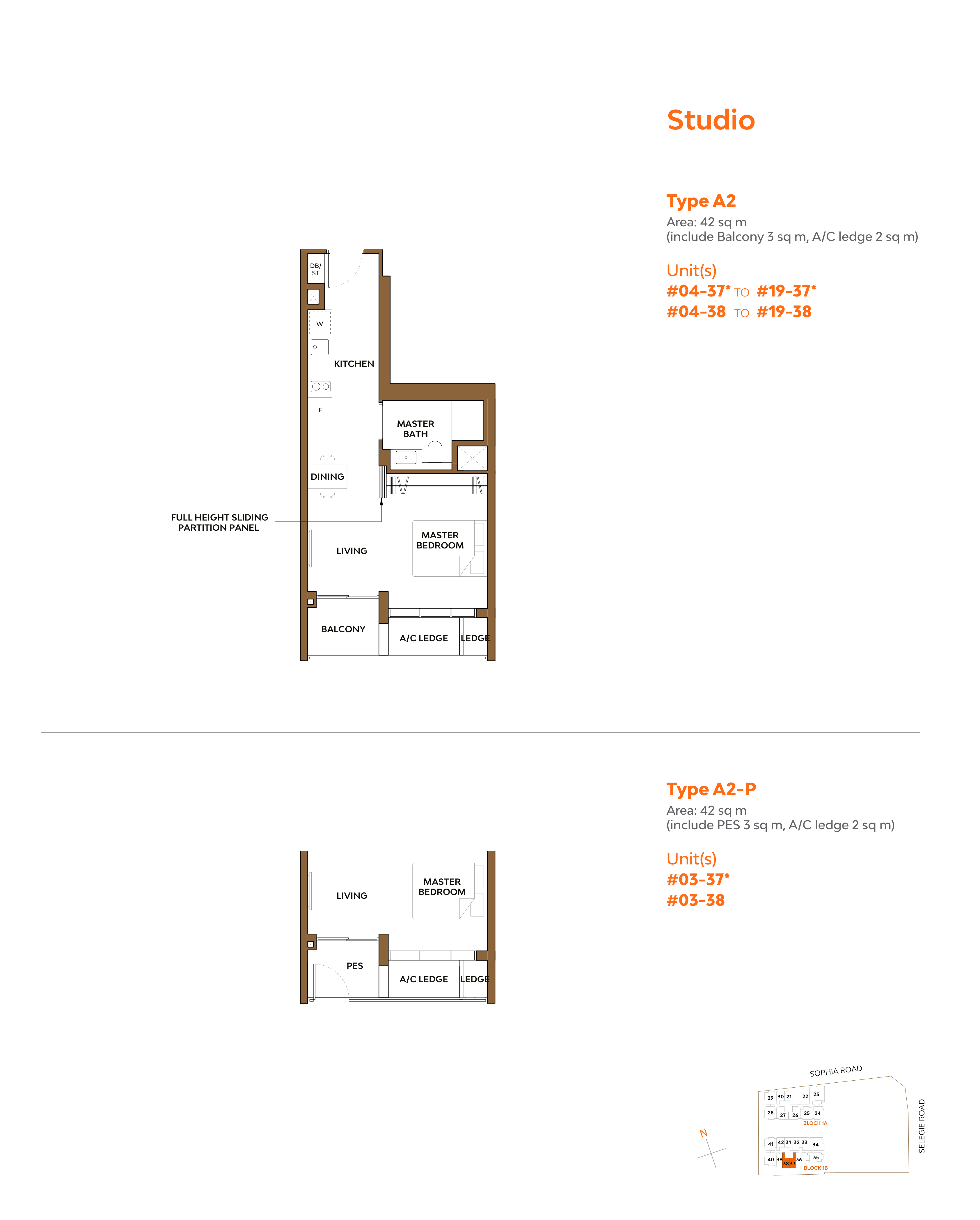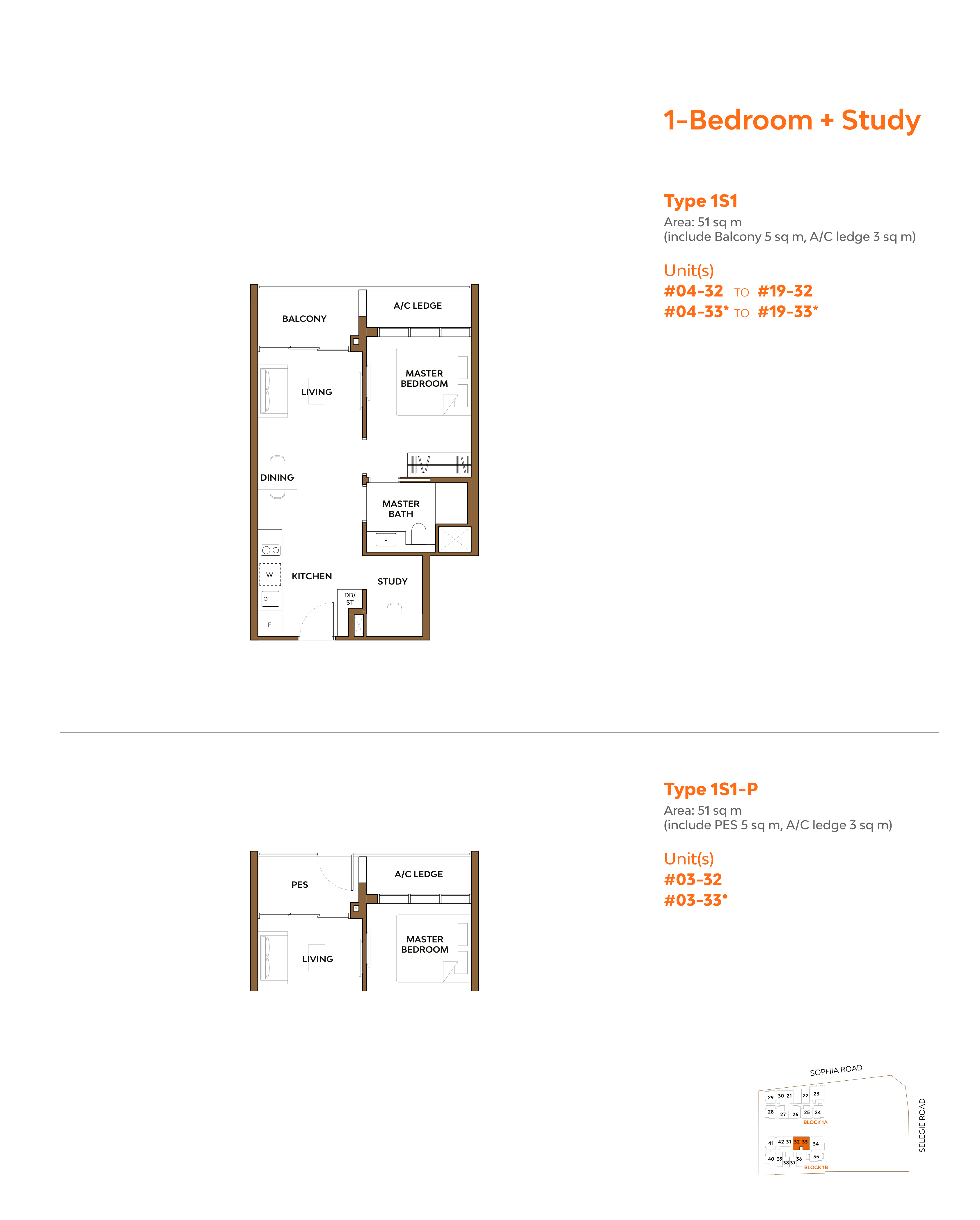 | 1 Bedroom + Study | 34 | 549 | |