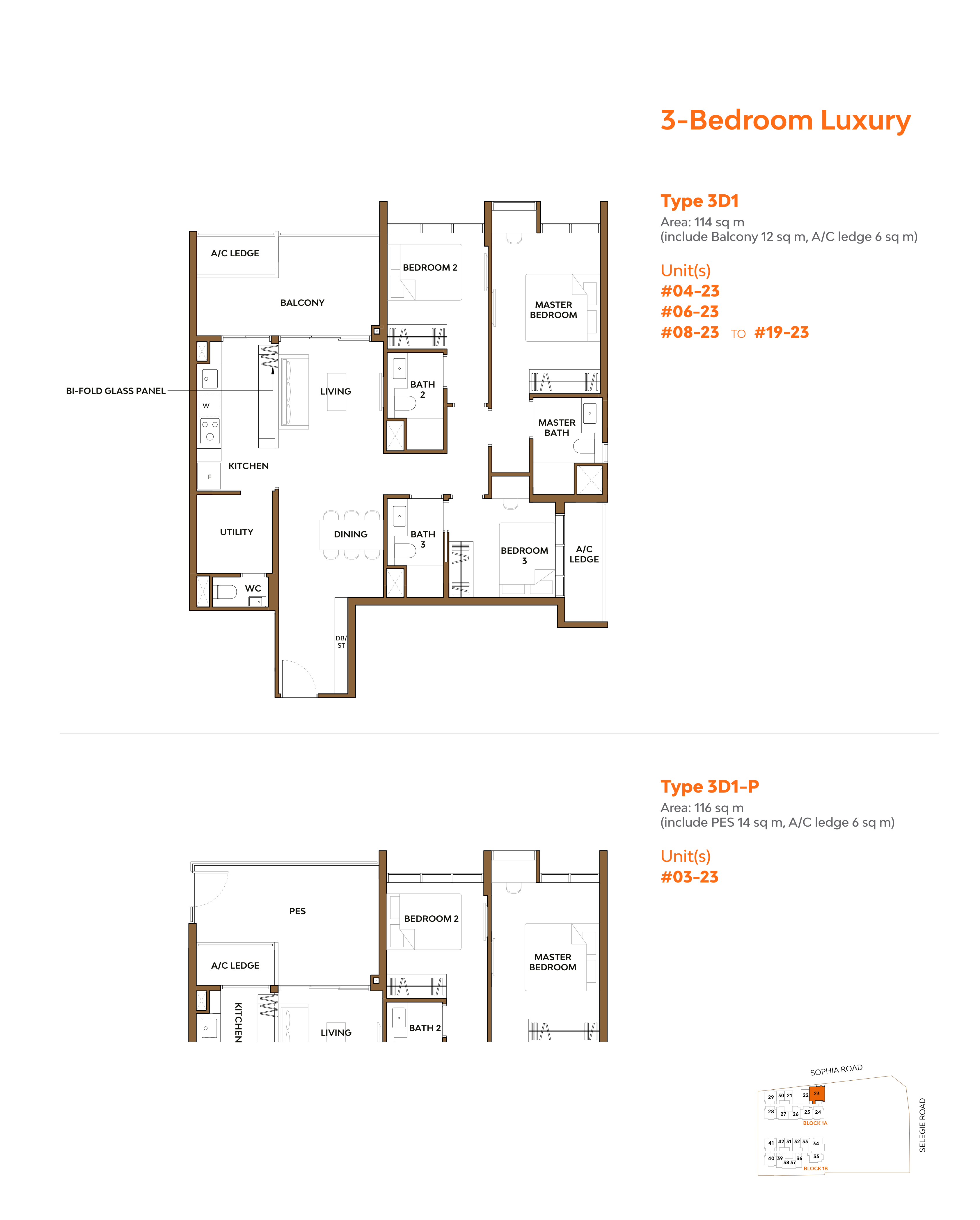| 3 Bedroom Luxury | 17 | 1,227 - 1,249 |